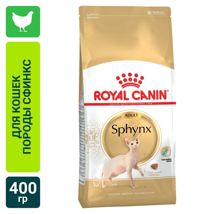СохранитьСухой корм Royal Canin "Sphynx Adult" для кошек породы сфинкс, 400гр интересное: