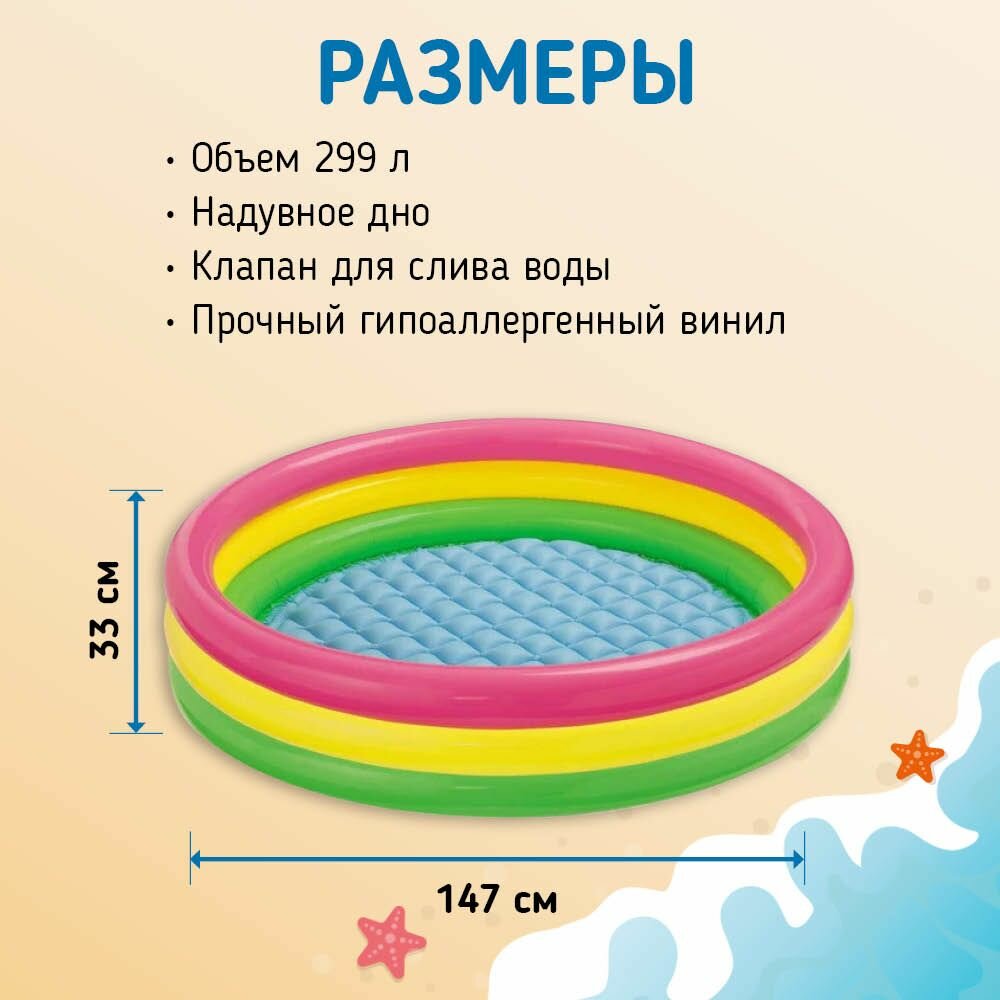 Надувной бассейн Intex Радуга, надувное дно, 147х33см, от 3 до 6 лет, 57422