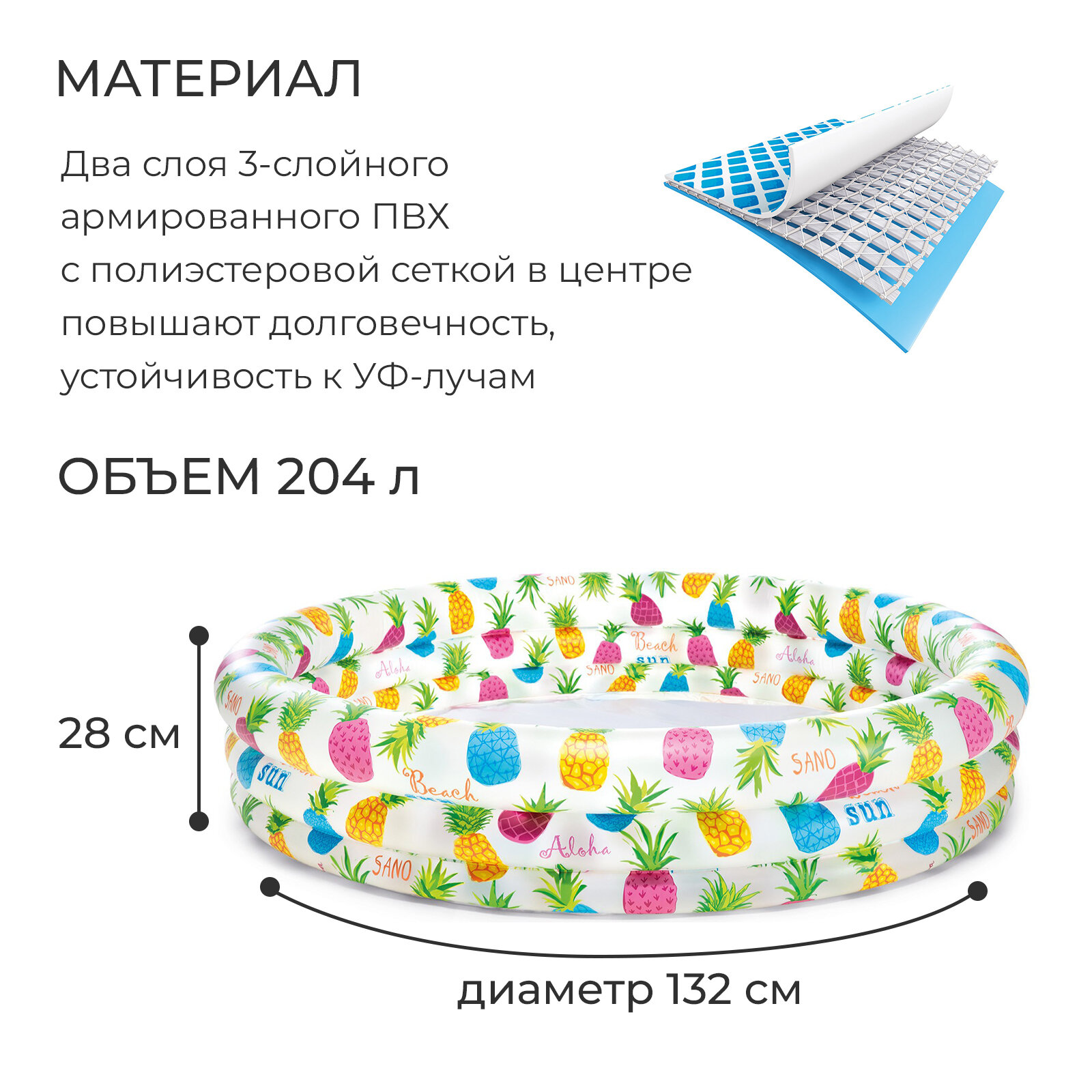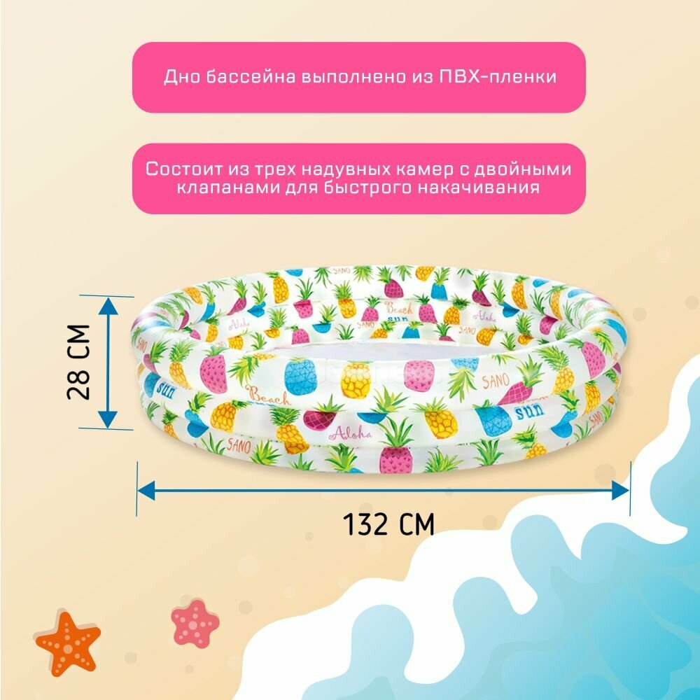 Бассейн надувной "Ананасы", 132 х 28 см, от 2 лет, 59431NP INTEX