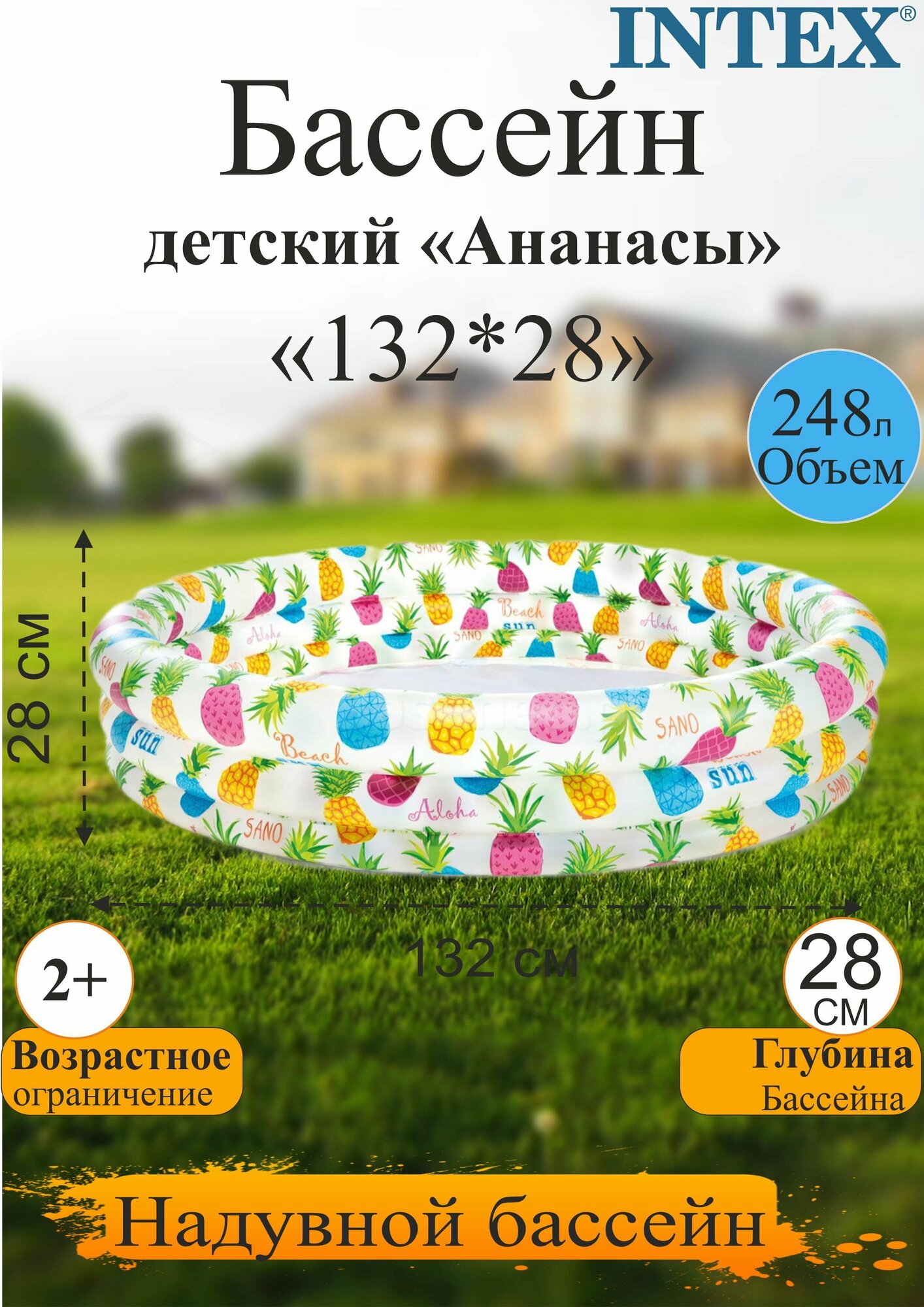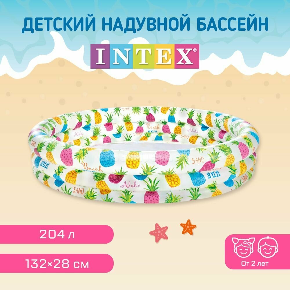 Бассейн INTEX, ананасовый рисунок, от 2 лет, 132х28 см (И59431)