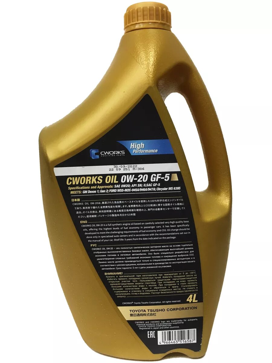 Синтетическое моторное масло CWORKS 0W-20 GF-5, 4 л