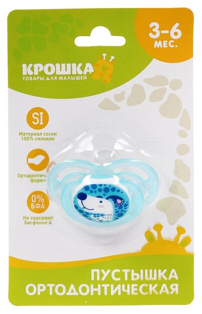 Крошка Я Пустышка силиконовая ортодонтическая, от 3 до 6 мес., цвет голубой
