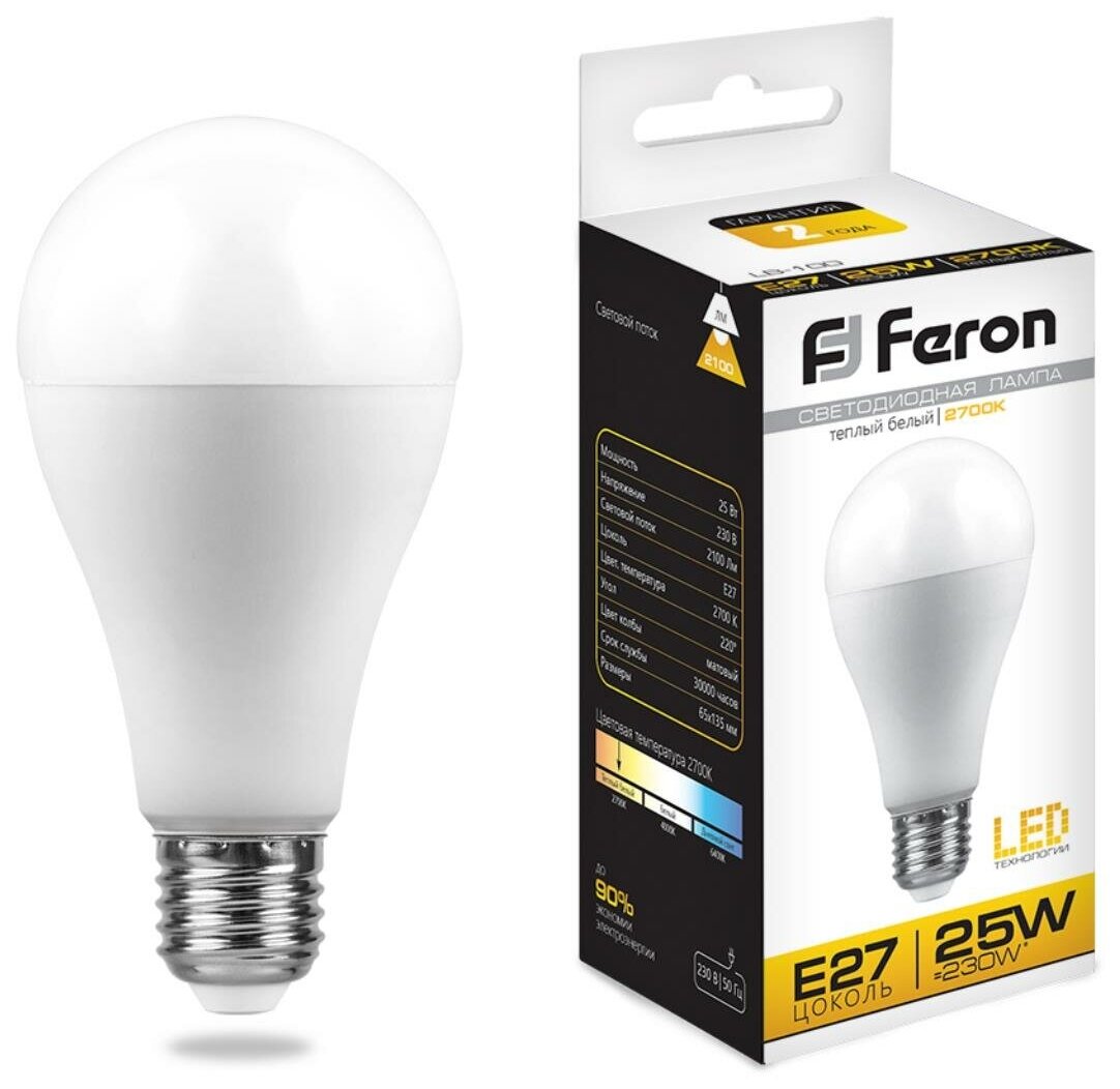 Лампа LED E27 25Вт теплый FERON