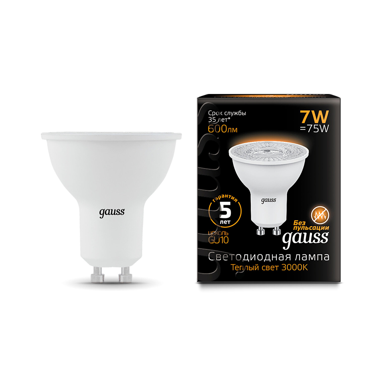 Лампа Gauss MR16 7W 600lm 3000K GU10 LED 1/10/100