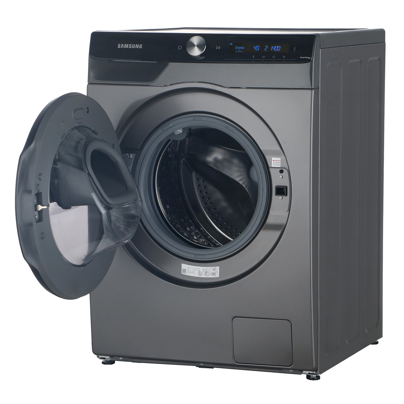 Стиральная машина Samsung WD10T654CBX/LP с сушкой, дверцей AddWash,10+7 кг, инверторным мотором, генератором Eco Bubble, обработкой паром, графит/черный