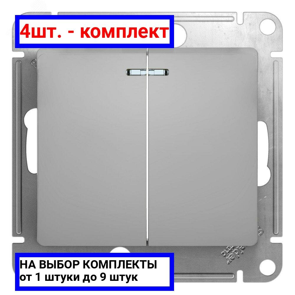Купить 4шт. - GLOSSA Выключатель двухклавишный с подсветкой в рамку алюминий сх.5а / Systeme Electric; арт. GSL000353; оригинал / - комплект 4шт