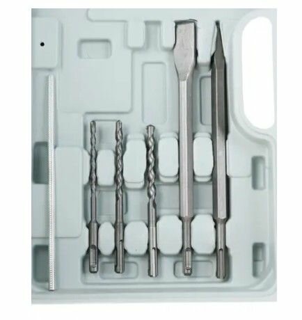 | Комплектация | боковая рукоятка, ограничитель глубины сверления, 3 бура, пика, зубило, ключевой патрон, смазка для бура, пыльник, кейс |