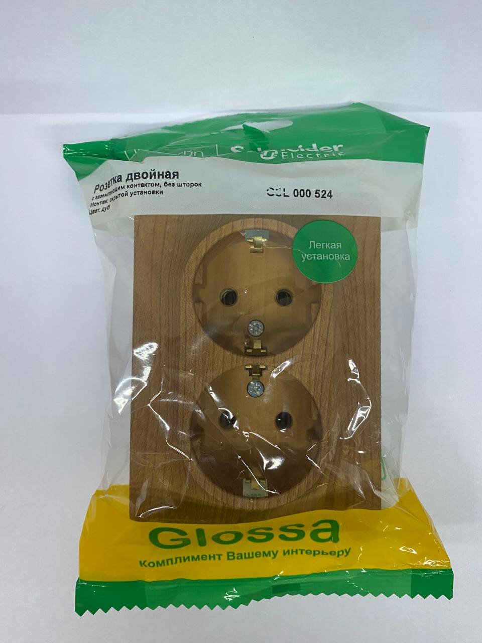 8шт. - GLOSSA Розетка двойная с заземлением в сборе дуб / Systeme Electric; арт. GSL000524; оригинал / - комплект 8шт