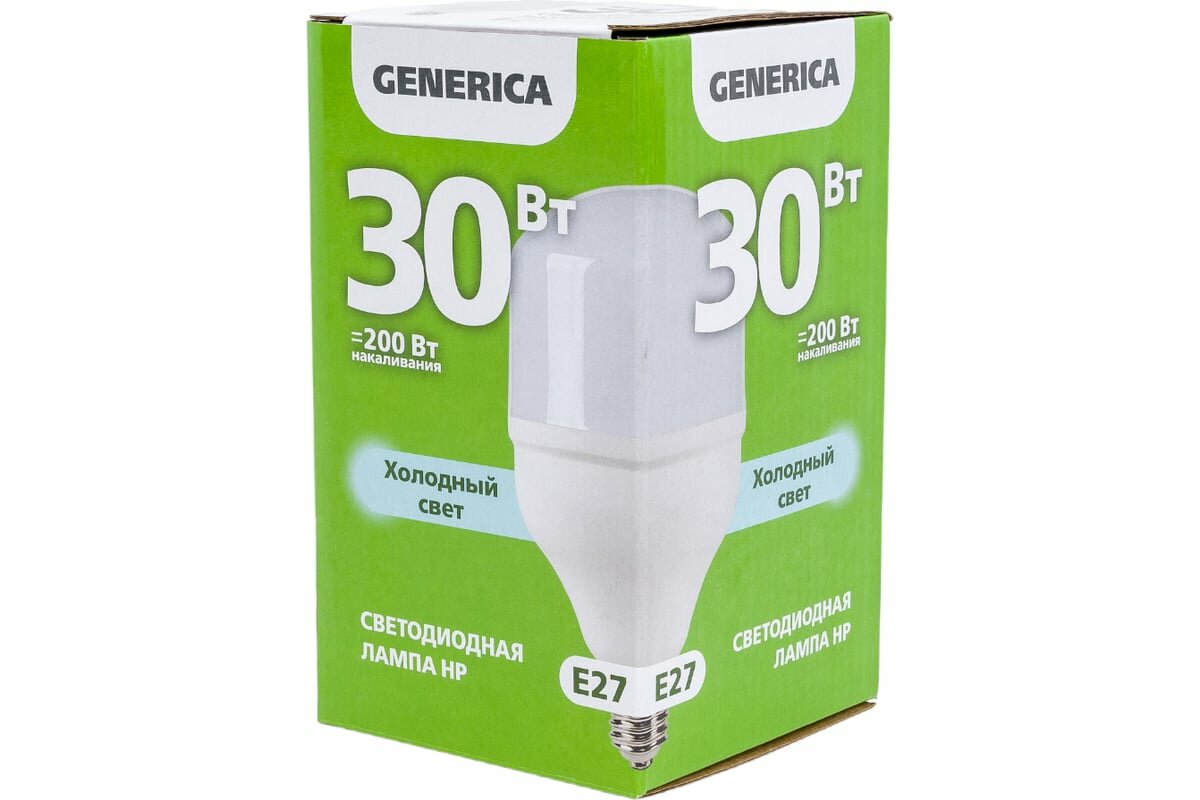 Лампа светодиодная GENERICA HP, 30 Вт, 6500 К, E27, 230 В, LL-HP-30-230-65-E27-G
