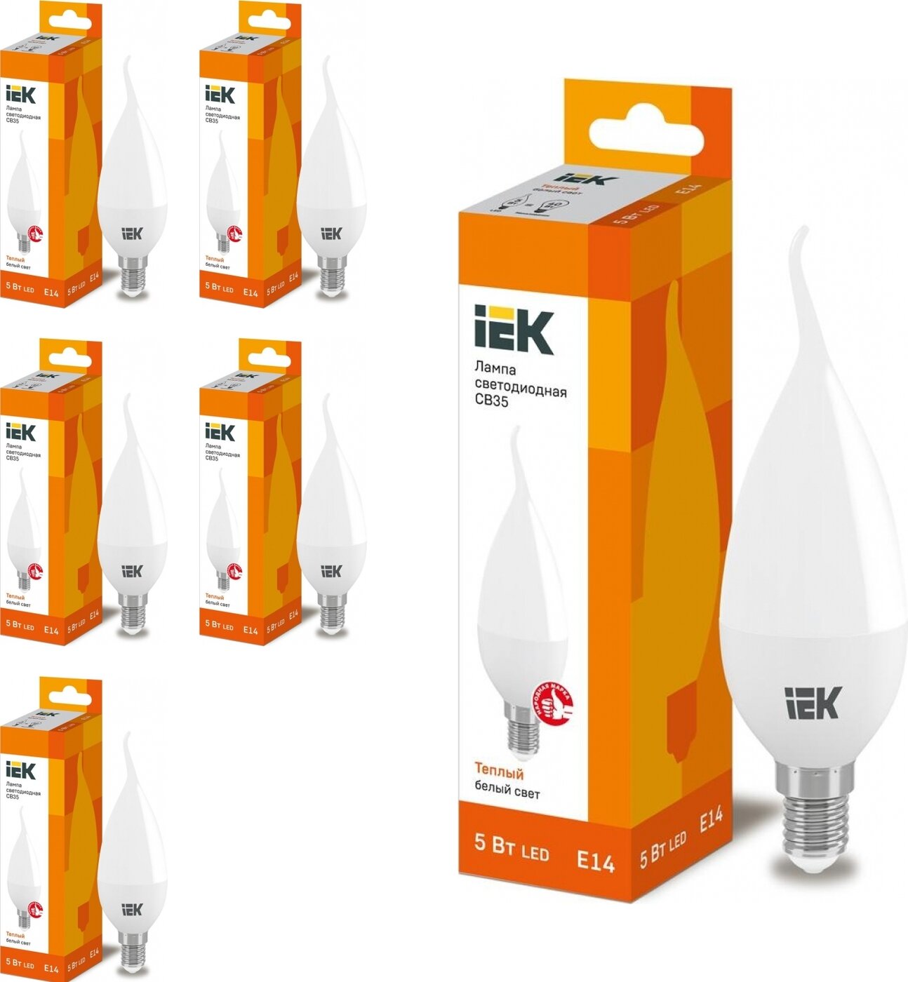 Купить Светодиодная лампа IEK 5W эквивалент 40W 3000K 450Лм E14 свеча на ветру (комплект из 5 шт.)