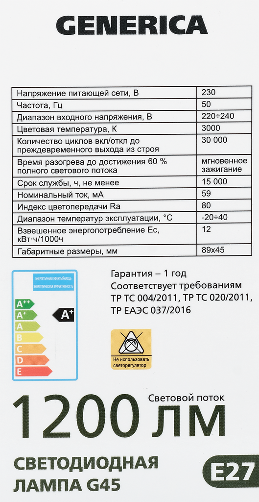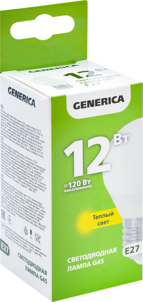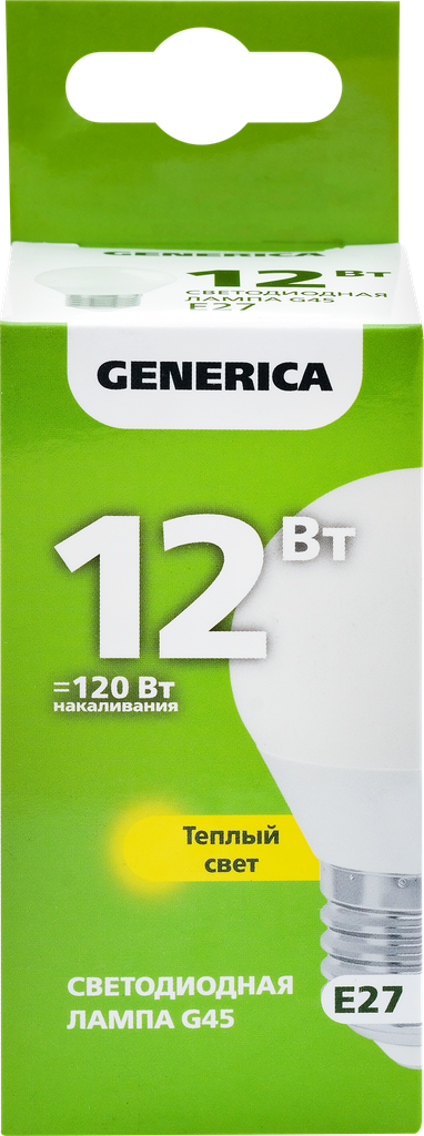 GENERICA шар G45 E27 12W(1200lm) 3000K 2K 45x81 матов. LL-G45-12-230-30-E27-G (арт. 827995)
