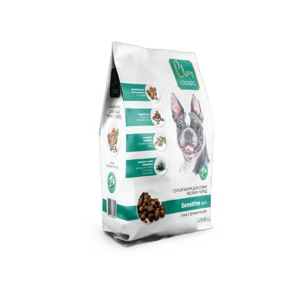 Корм для собак мелких сухой CLAN Classic Sensitive 24/11 с чувствительным пищеварением, утка с бурым рисом, 1.25кг