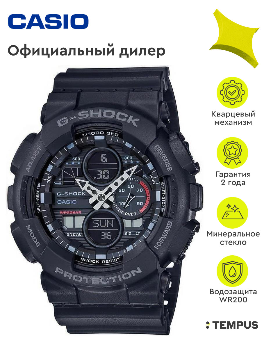 Наручные часы CASIO G-Shock GA-140-1A1 мужские, кварцевые, будильник, хронограф, секундомер, таймер обратного отсчета, водонепроницаемые, противоударные, подсветка дисплея, черный