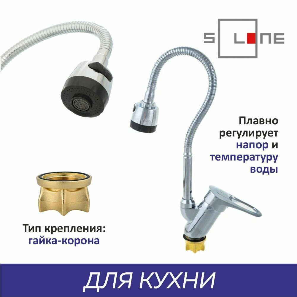 Смеситель для кухни, Solone, гибк излив, с картриджем, хром, KAD4-B043