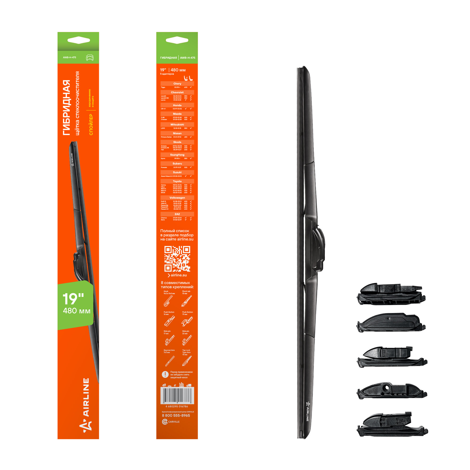 Щетка стеклоочистителя гибридная 475 мм (19), 8 адаптеров Airline AWBH475