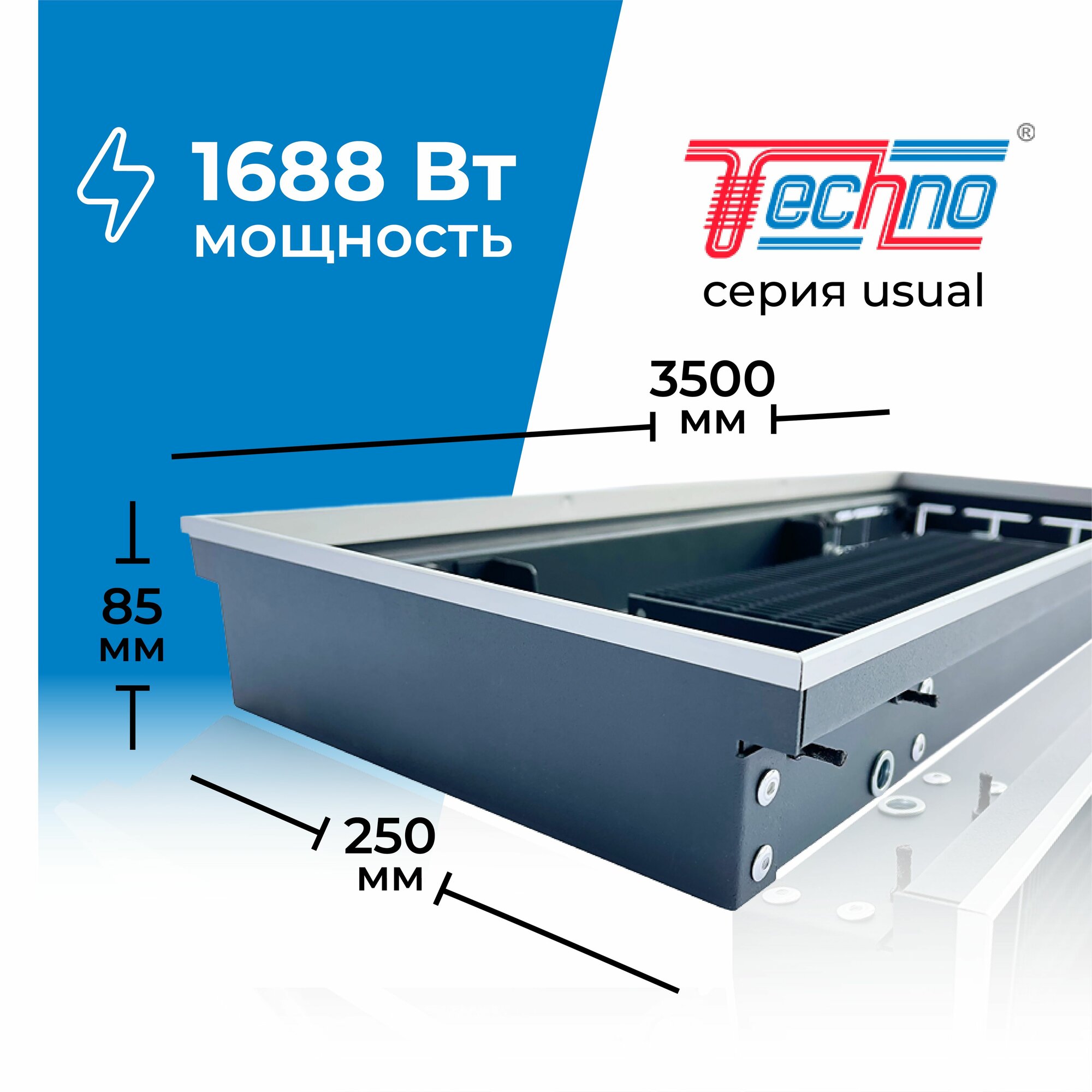 СохранитьВодяной конвектор с решеткой Techno Usual KVZ 250 - 85 - 3500 мм ( встраиваемый / внутрипольный ) с естесственной конвекцией интересное: