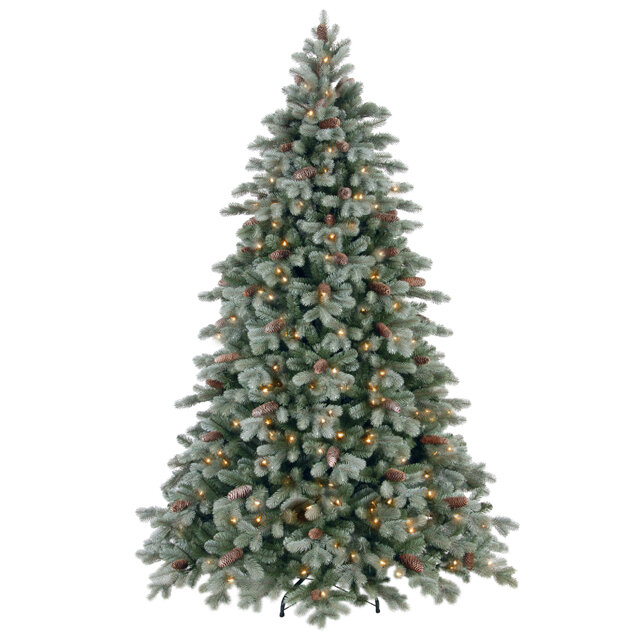 Искусственная ель "Колорадо" голубая с шишками, 600 теплых белых ламп (Power connect), литая хвоя РЕ+PVС, 228 см, National Tree Company