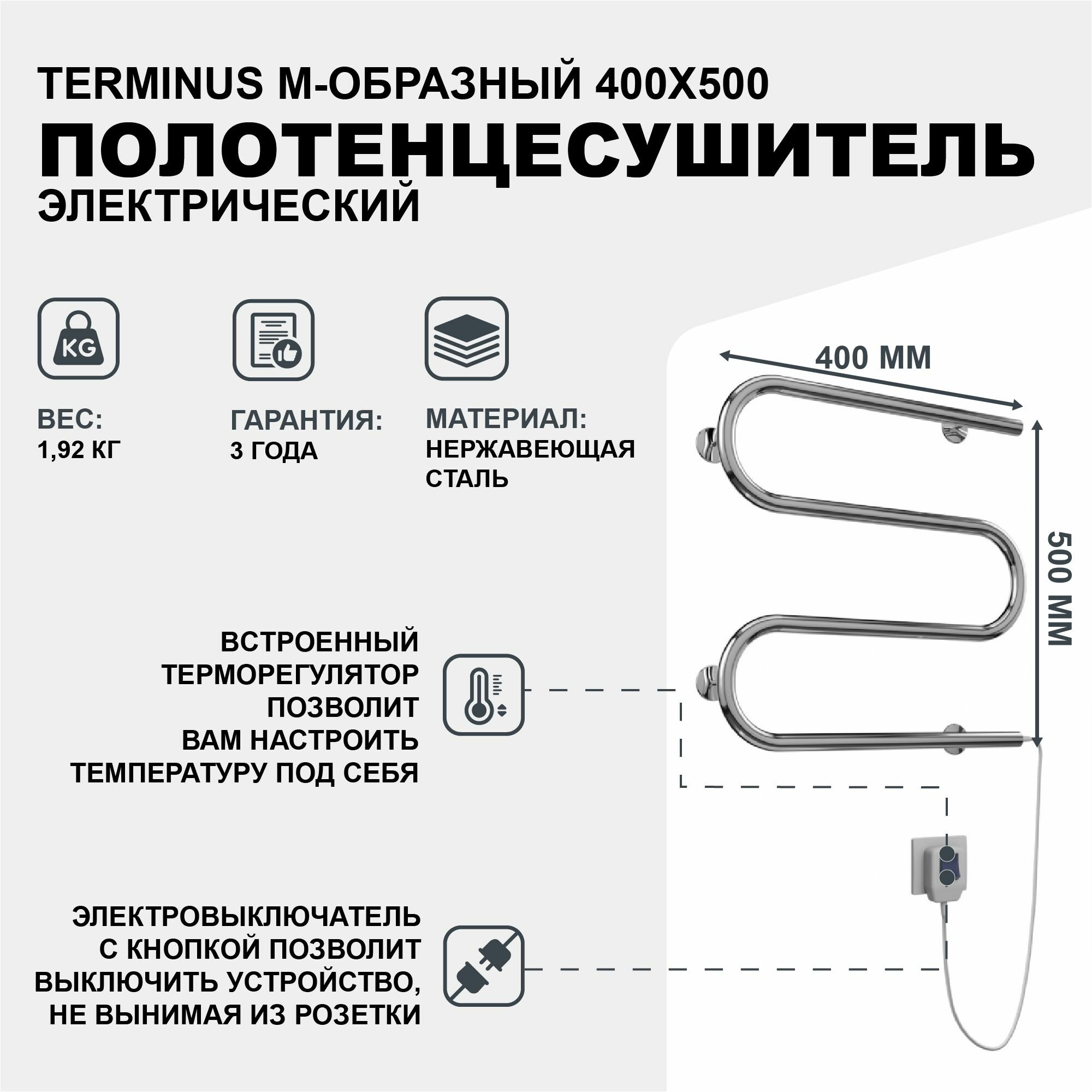 Полотенцесушитель электрический Terminus М-образный 400x500 4620768883903