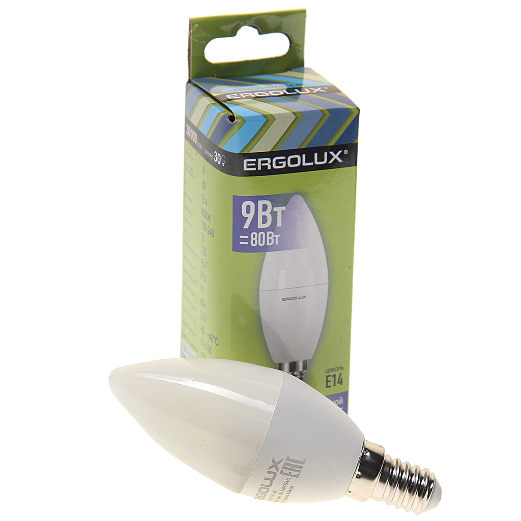 Лампочка ERGOLUX LED-C35-9W-E14-6K Свеча 9 Вт, E14, белый