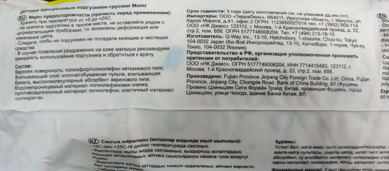 | Минусы: | Покупала много раз, все было супер, а купила сейчас и они оказались более тонкие, это ощущается на ощупь и видно по толщине подгузника. Я расстроена. В следующий раз подумаю перед покупкой. |