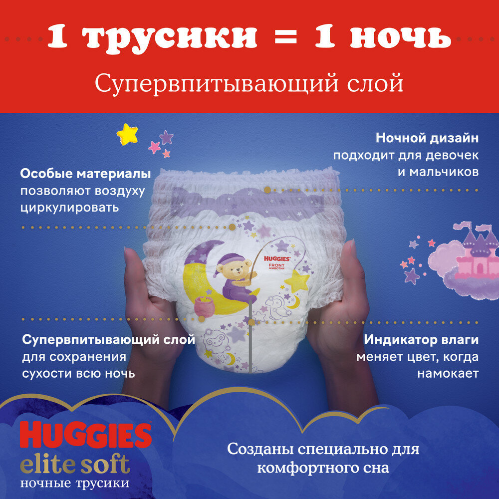 Ночные трусики-подгузники Huggies Elite Soft 3 (6-11кг) 23 шт