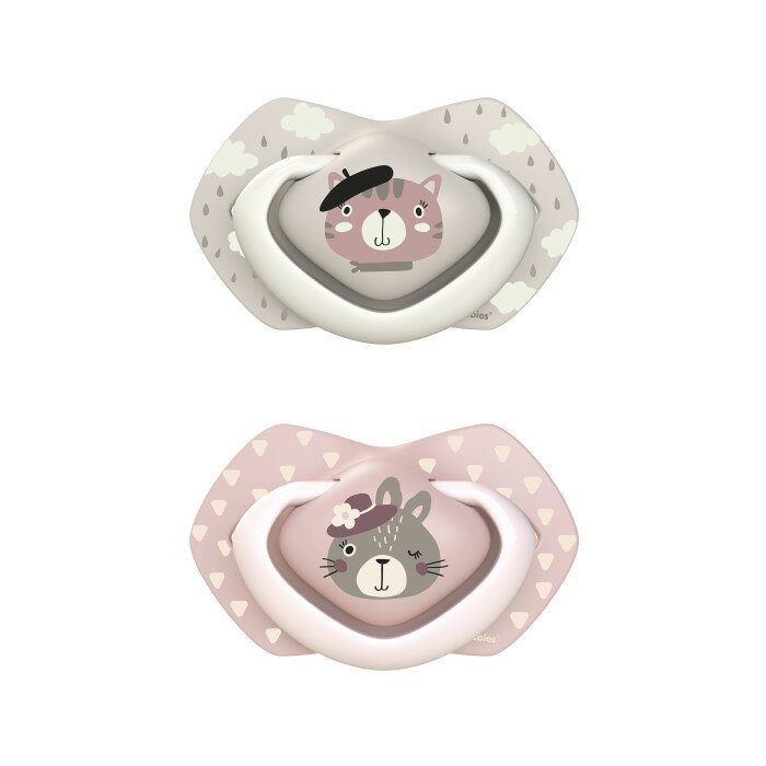 Пустышка силиконовая симметричная Canpol Babies Bonjour Paris 6-18 мес., 2 шт., розовый/бежевый, 2 шт.