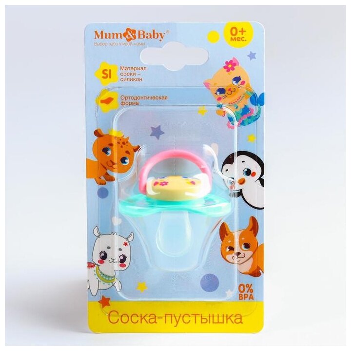 Mum&Baby Соска-пустышка ортодонтическая, силикон, +0мес., цвет бирюзовый