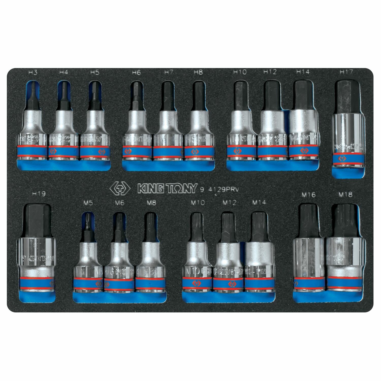Купить KING TONY Набор торцевых насадок HEX и SPLINE, ложемент, 19 предметов 9-4129PRV
