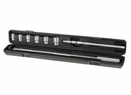 | Головки торцевые подробно | 17, 19, 21, 22, 24, 27 мм; удлинители: 75, 250 мм; вороток шарнирный усиленный 600 мм |