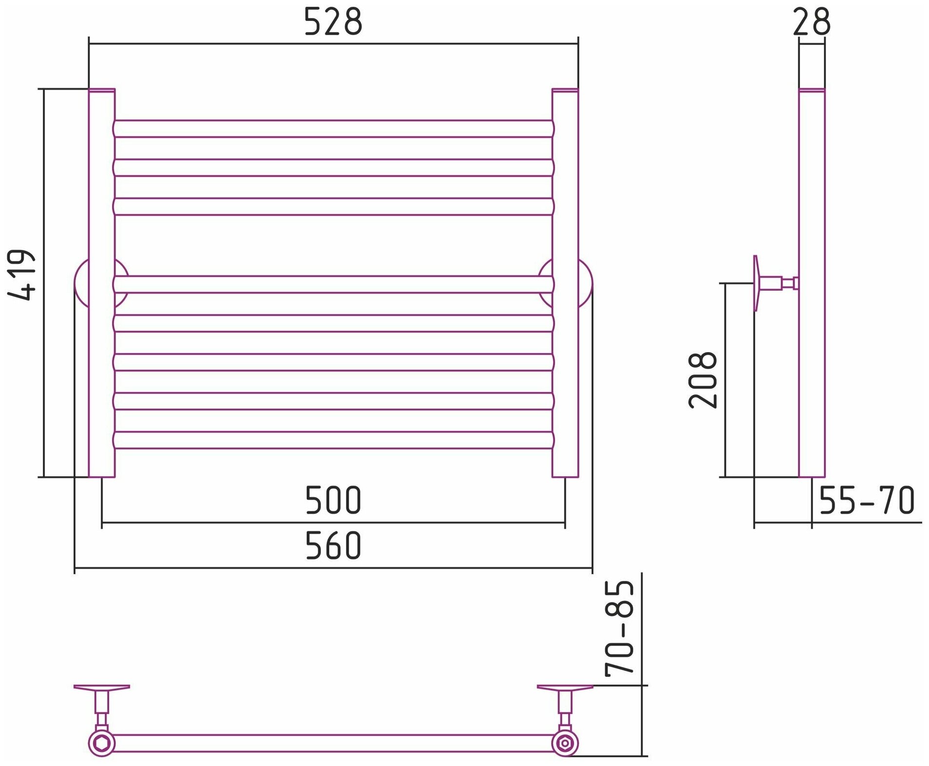 Полотенцесушитель водяной Стилье Универсал-53 500х500 (3+5) П 18 Без покрытия 00653-5050 интересное: