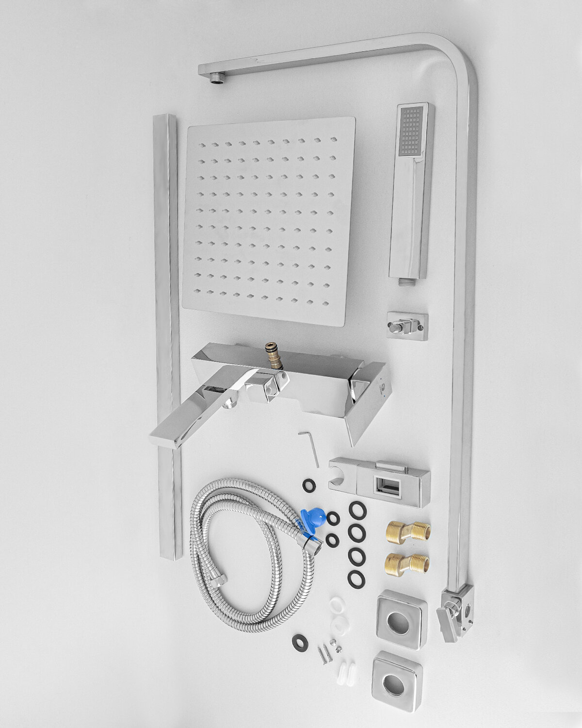 | Комплектация | верхний душ / шланг для душа / излив / Смеситель / душевая лейка / душевая штанга / держатель лейки / держатель штанги / эксцентрики / инструкция |
