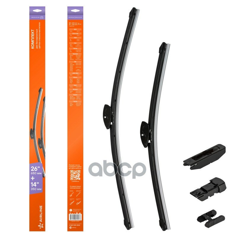 AIRLINE AWBBK650350K Щетки стеклоочистителя 650/350 мм (26"/14") бескаркасные, 4 адаптера (компл. 2 шт.)
