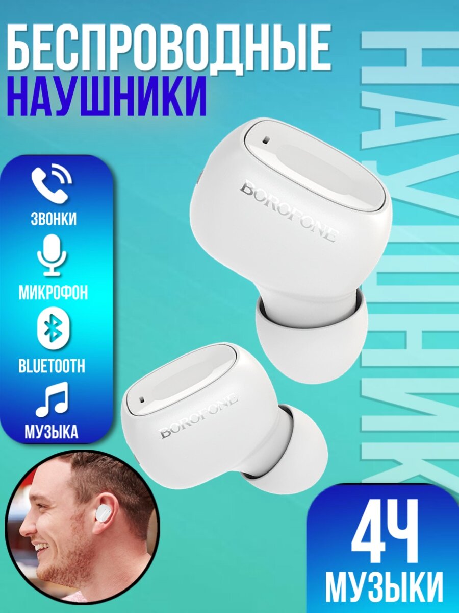 Купить Borofone Наушник беспроводной Borofone BC28 Shiny sound, микрофон, BT5.0, 40 мАч, белый