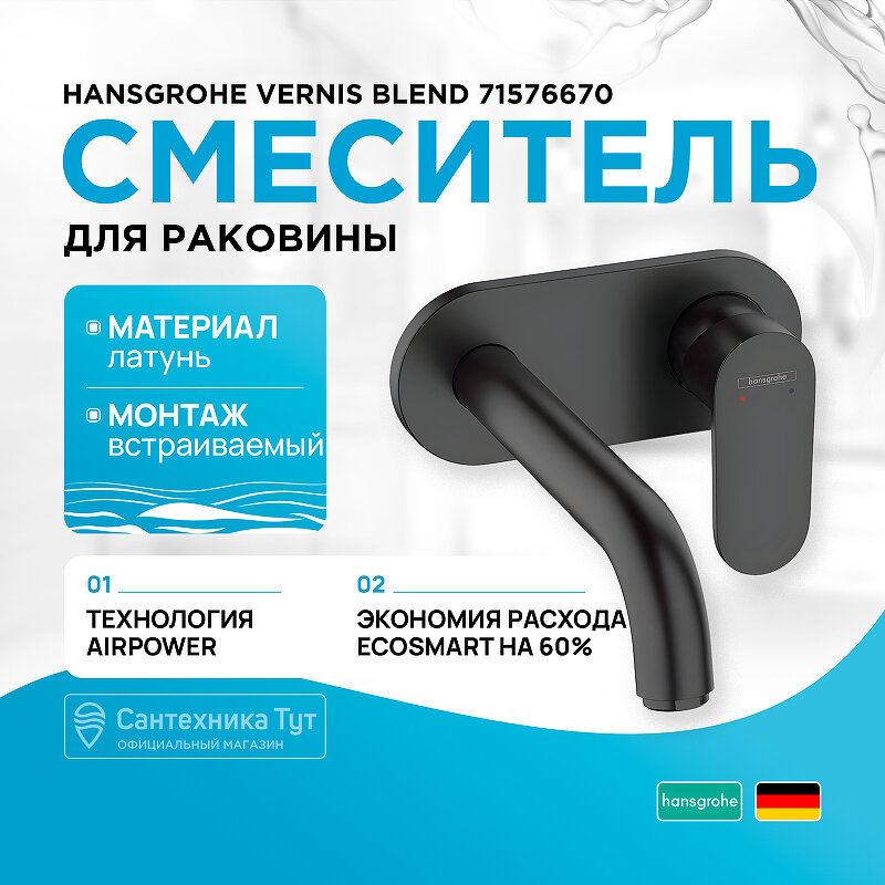 Hansgrohe Vernis Blend Смеситель для раковины, встраиваемый, цвет: черный матовый 71576670
