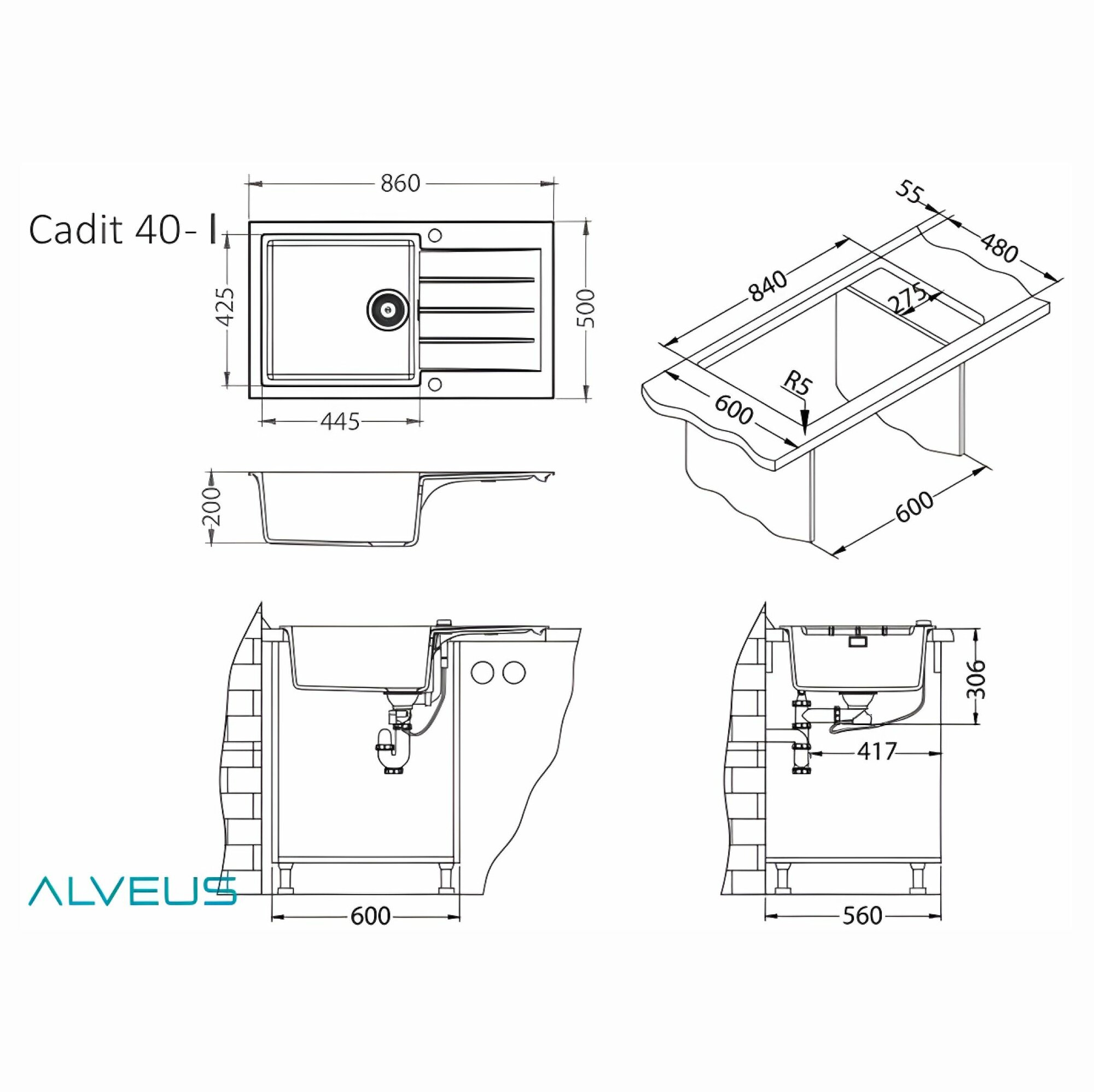 Мойка ALVEUS GRANITAL CADIT 40 ARCTIC - G11 860 X 500 1X
