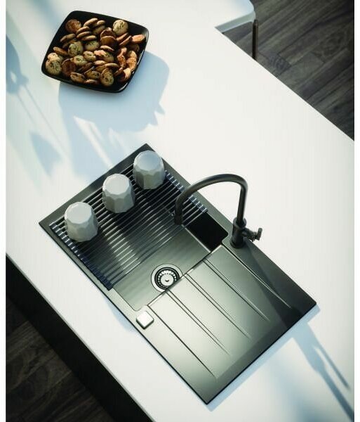 Каменная мойка врезная для кухни с крылом ALVEUS GRANITAL CADIT 20 CARBON - G91 790 X 500 1X искусственный камень гранит с сифоном. Цвет черный