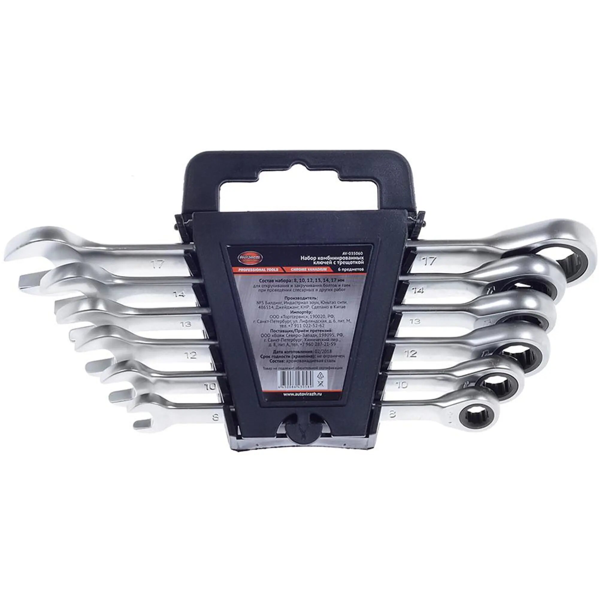 Набор ключей комбинированных трещоточных 8-17мм av steel 6предм., AV STEEL AV035060 (1 шт.)