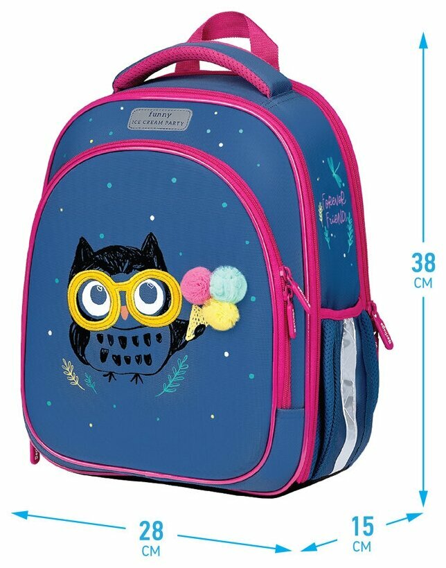 Ранец Berlingo Expert Light облегченный «Funny owl» 38×28×15см, 3 отделения, 2 кармана, анатомическая спинка
