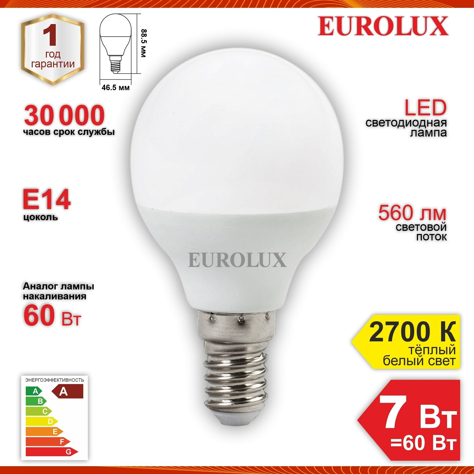 Лампа светодиодная Eurolux 76/2/5, E14, G45, 7Вт, 2700 К