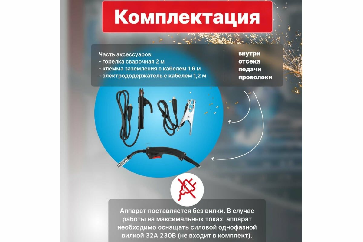 | Дополнительная информация | однофазная силовая вилка не входит в комплект, напряжение холостого хода (MIG) 59.5 В; напряжение холостого хода (MMA) 84.5 В |