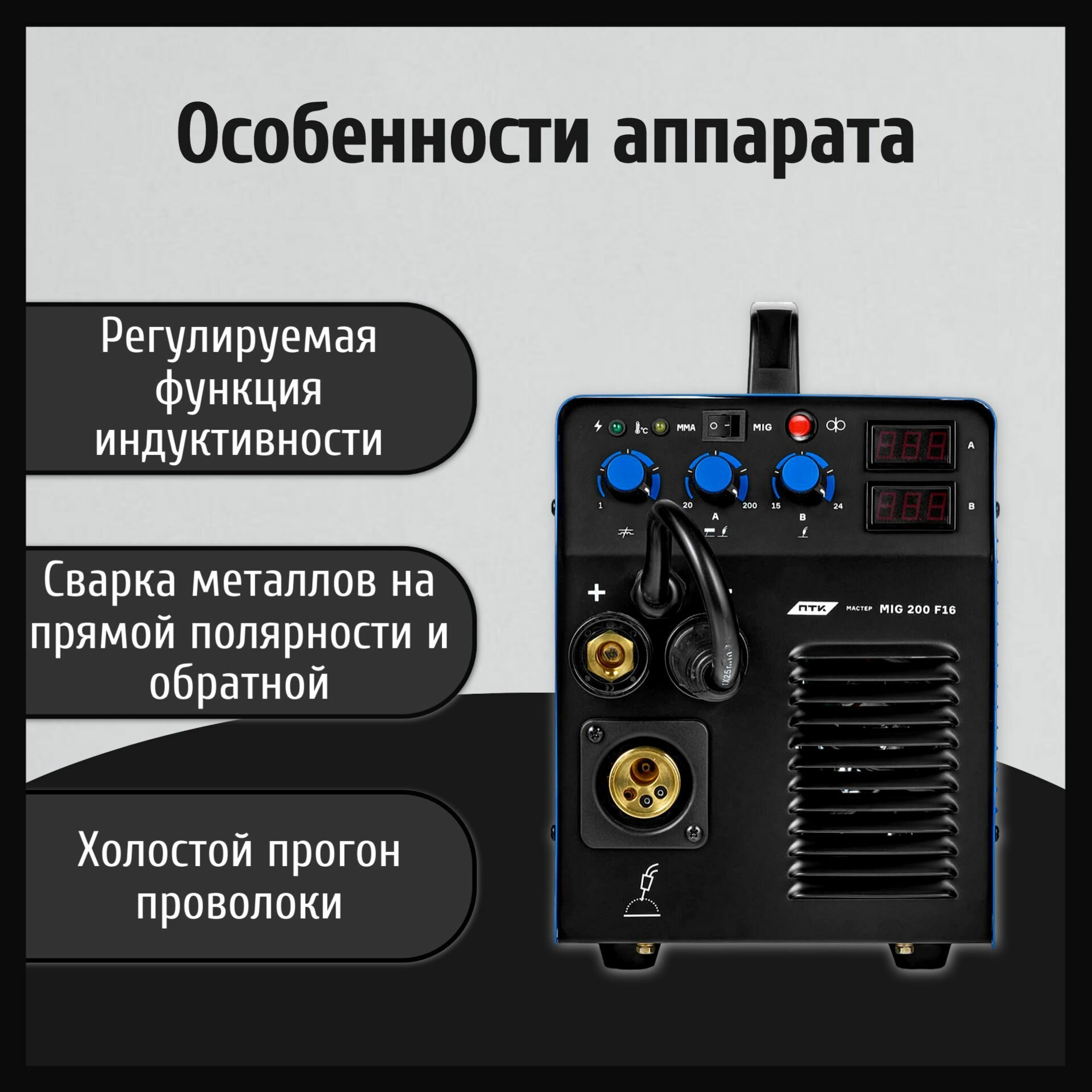 Сварочный аппарат инверторного типа ПТК мастер MIG 200 F16 2020, MMA, MIG/MAG