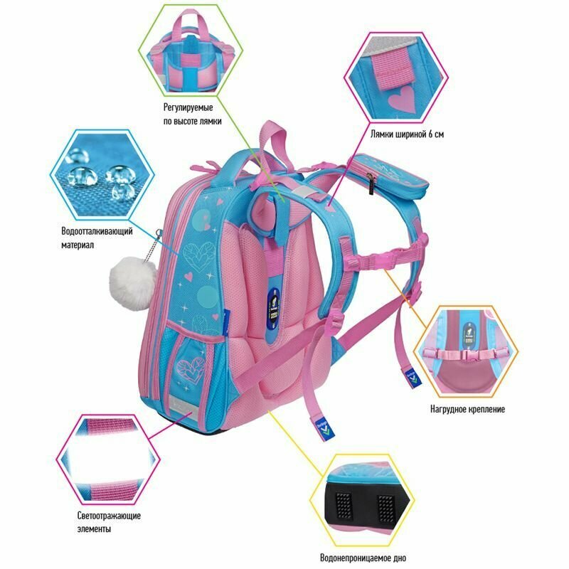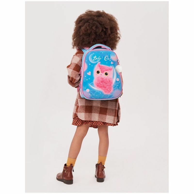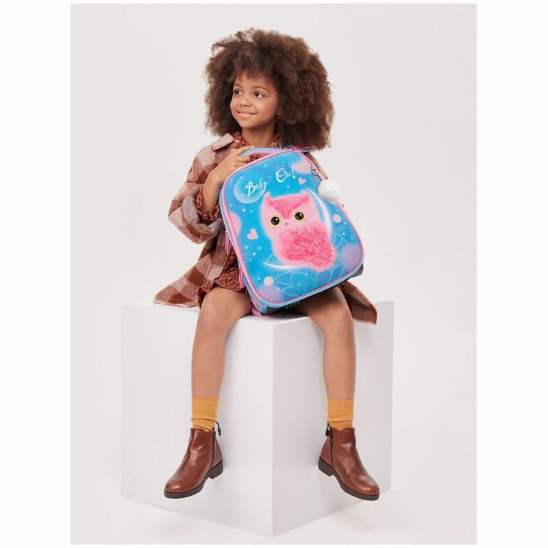 Ранец Berlingo Expert "Plush Owl" RU06104, 37*28*16 см, 2 отделения, 2 кармана, голубой, розовый