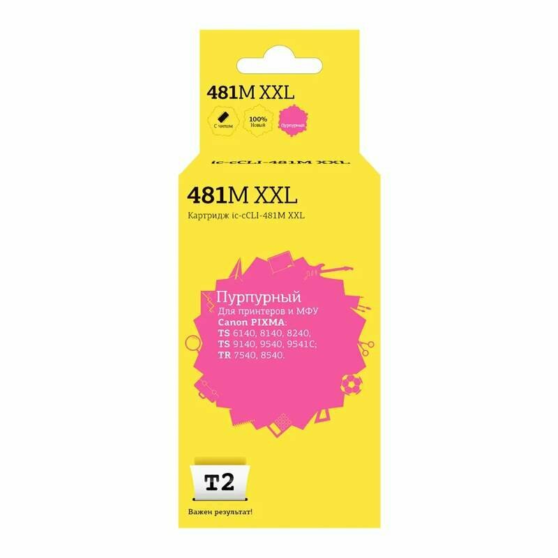 T2 Расходные материалы CLI-481M XXL Картридж IC-CCLI-481M XXL Canon PIXMA TS6140 704 8140 8240 9140 9540 9541C TR7540 8540, пурпурный, с чипом
