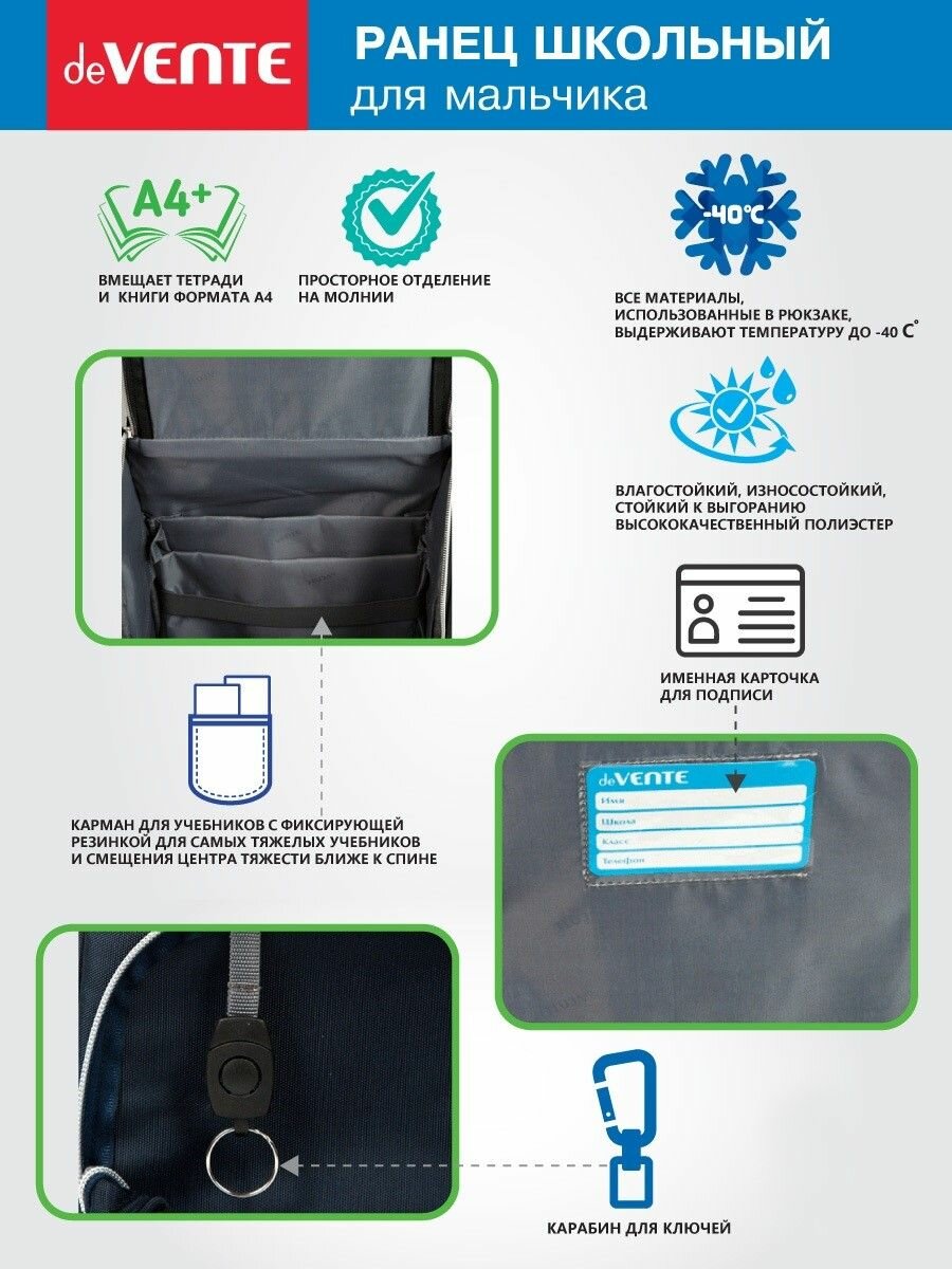 Рюкзак школьный для мальчиков ранец портфель сумка deVENTE. Business 44*31*14 см спортивный