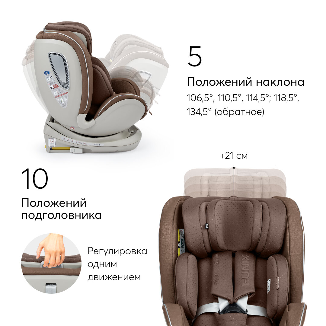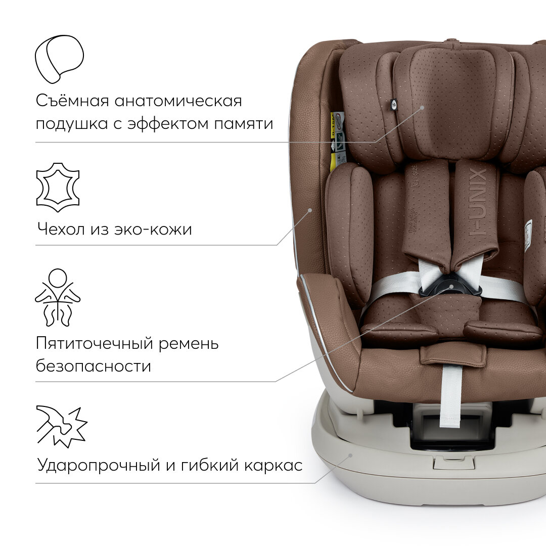 Автокресло детское от 0-12 лет, i-size, поворот на 360, I-Unix Happy Baby, группа 0+/1/2/3(0-36 кг), экокожа, коричневый