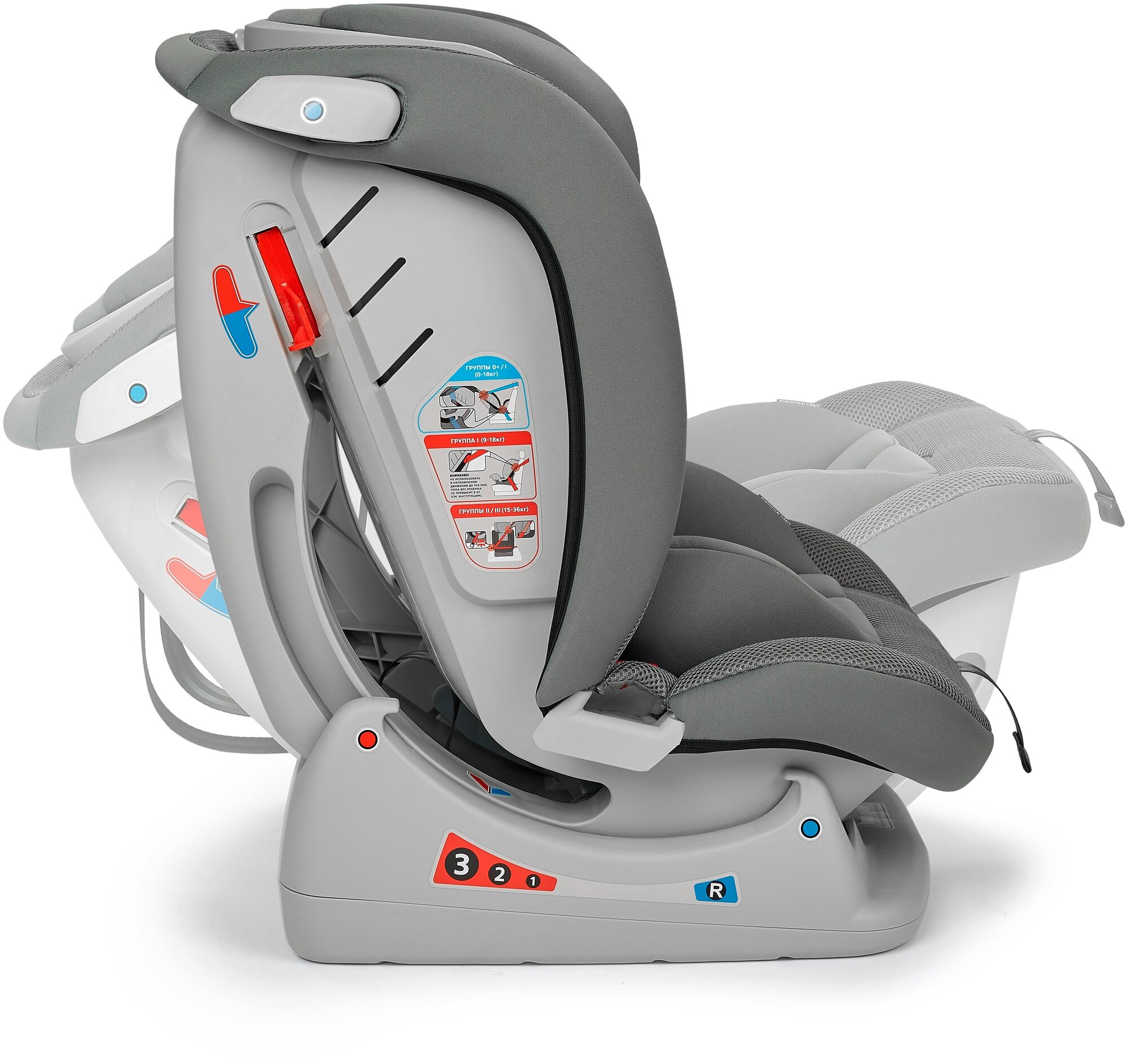 Автокресло Happy Baby детское Sandex, 0-12 лет, группа 0/1/2/3, (0-36 кг), светло-серое