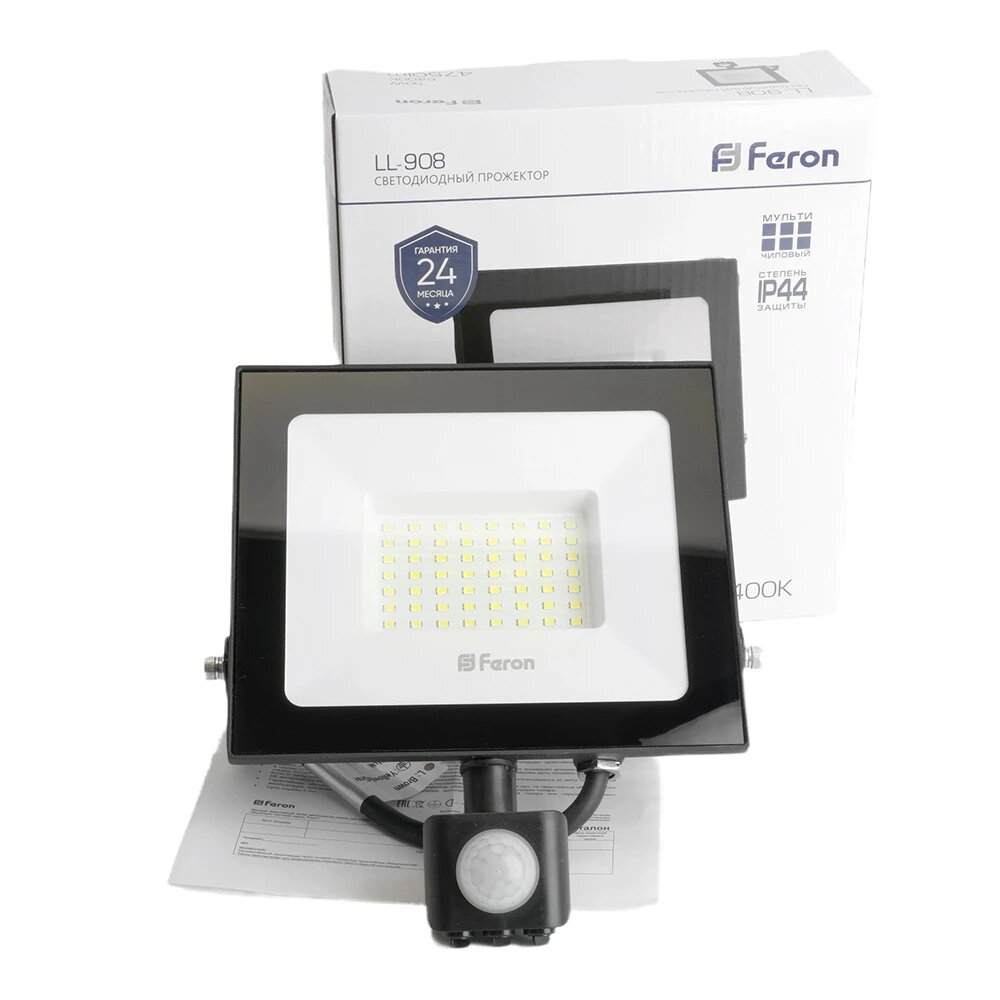 Светодиодный прожектор с датчиком LL-908 IP44 50W 6400K, FERON 29558 (1 шт.)