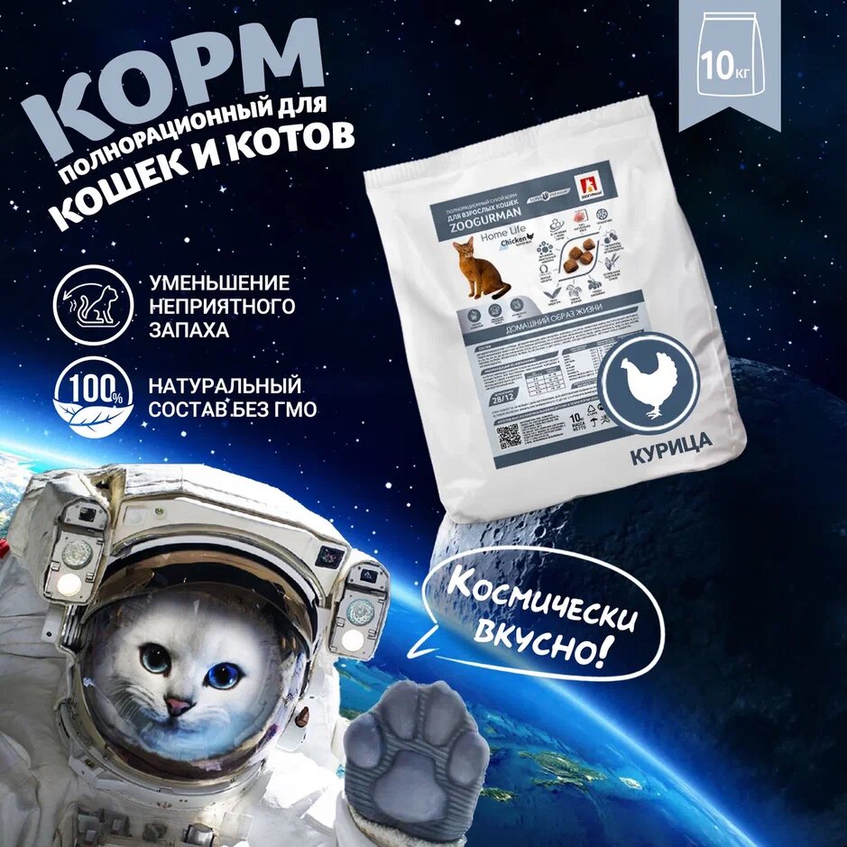 Корм Зоогурман Home Life Chicken для кошек, с курицей, 10 кг