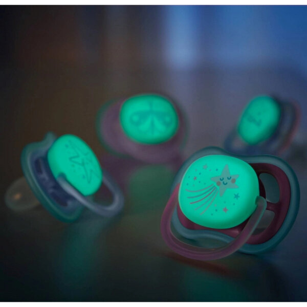 Пустышка для девочек Philips Avent ultra air night SCF376/22, с футляром для хранения и стерилизации, 2 шт, 6-18 мес