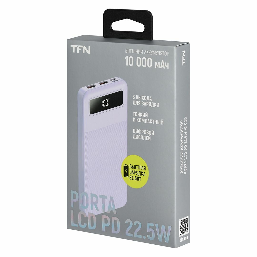 Внешний аккумулятор TFN 10000mAh Porta LCD PD 22.5W, фиолетовый TFN-PB-321-VL